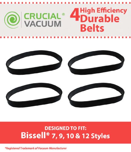 4 Durable Bissell Style 7 9 10 12 Vacuum Cleaner Belts Style 7/9/10/12, Replaces Part# 32074, Designed & Engineered by Crucial Vacuum