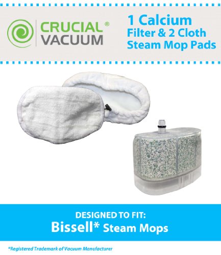 1 Bissell Vacuum Cleaner Water-Calcium Filter & 2 Mop Pads; Fits The Bissell Vacuum Steam Mop 218-5600; Part # 2185600, 218-5600, 203-2158, 2032158, 3255 & 32525; Designed & Engineered by Crucial Vacuum