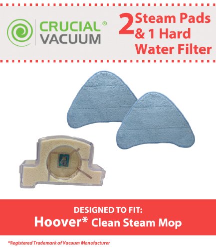 2 Hoover Steam Mop Pads & 1 Hard Water Filter, Designed To Fit WH20200 Steam Mop, WH20300 Canister Steam Cleaner, Compare To part # WH01000 & 440001633, Designed & Engineered By Crucial Vacuum
