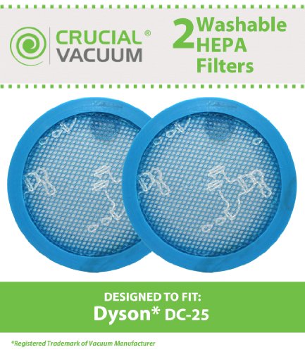 2 Dyson DC25 Lifetime Washable & Reusable HEPA Vacuum Cleaner Filters, Replaces Dyson Vacuum Part # 914790-01, Designed & Engineered by Crucial Vacuum
