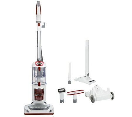 - Clean up, down, and all-around, with the Shark Rotator Lift-away's floor-to-ceiling versatility. The power of an upright meets the portability of a handheld canister vac in this two-in-one multi-tasker--it's perfect for stairs, upholstery, hard floors, and all those difficult-to-reach areas. Enhanced swivel steering and a slim head design make this lightweight Shark easy to maneuver around and under al your home's furniture and obstacles. And the Dust Away hard-floor attachment helps you attack your hardwood, kitchen, and bathroom floors, too! Proven cleaning performance you can count on. In a clinical study, the Shark Rotator did not lose suction or power even when the dust bin was full. And the anti-allergen HEPA filter kills 99.9 of airborne particles. Discover for yourself why so many QVC customers love the Shark Rotator Professional Lift-Away. Just choose your favorite color, and get ready to clean up, down, and all-around! From Shark. Includes vacuum with HEPA filter, dusting brush, 12" crevice tool, pet turbo brush, wide upholstery brush, and Dust Away hard-floor attachment with two reusable microfiber pads Ergonomic accessories Complete seal technology; ideal for homes with pets Rotator swivel for difficult-to-reach areas Headlights Wand reach 34" 3.1-quart bin capacity 9-3/4"W cleaning path Approximate measurements: Vacuum 46"H x 12"D x 12"W; Cord 30'L; weighs approximately 16 lbs Cannot ship to P.O. Boxes ETL listed; 5-year Limited Manufacturer's Warranty